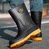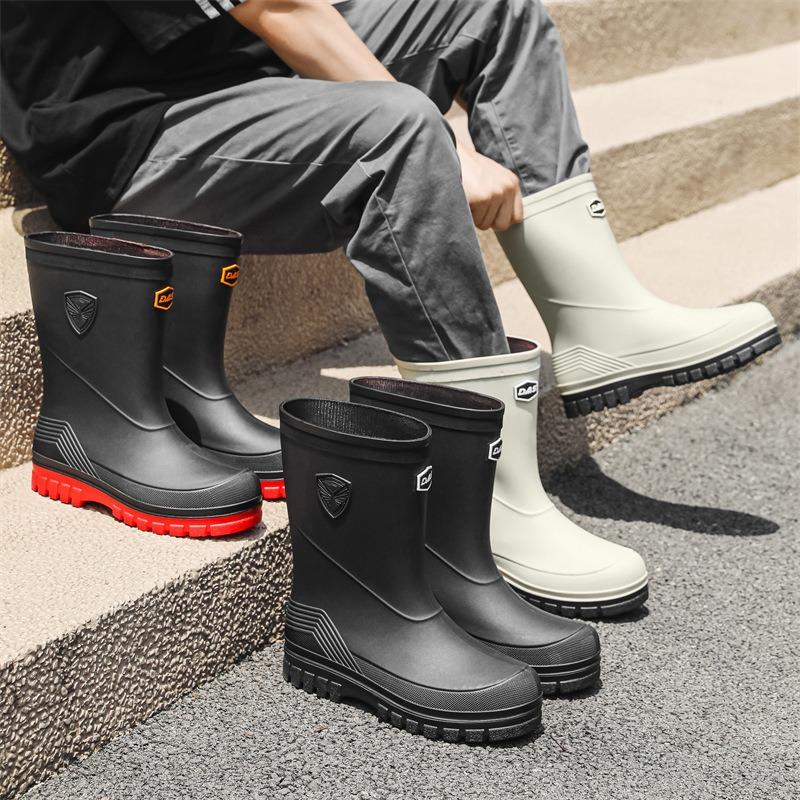 New thick-soled medium tube rain shoes men's non-slip waterproof shoes fashionable outdoor water boots warm rain boots rubber shoes men