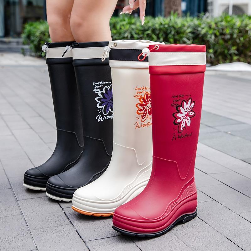 New fashionable women's high tube bundle rain shoes printed winter cotton warm women's water boots outdoor kitchen work shoes