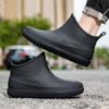Men's short rain shoes fashion non-slip waterproof fashion rain boots fleece thermal rubber shoes kitchen water shoe cover shoes fashion
