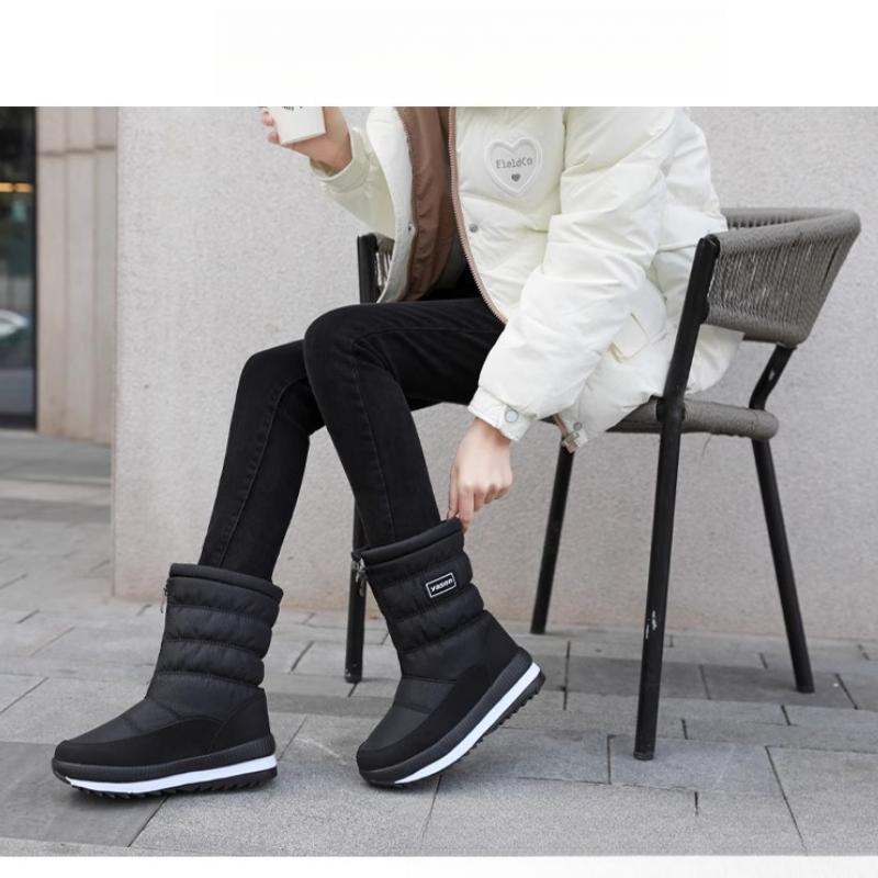 Dámské zimní kozačky s kožešinou, jedna vlněná podšívka, jeden třmen přes chodidlo, teplé, proti chladu, lehké, turistické, voděodolné, protiskluzové, vysoké, do půli lýtka, sněhule