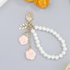 Retro Camellia Flower Pendant Pearl Keychains For Women Backpack Decor Keyring Mobile Phone Beaded Key Chain Diy Jewelry