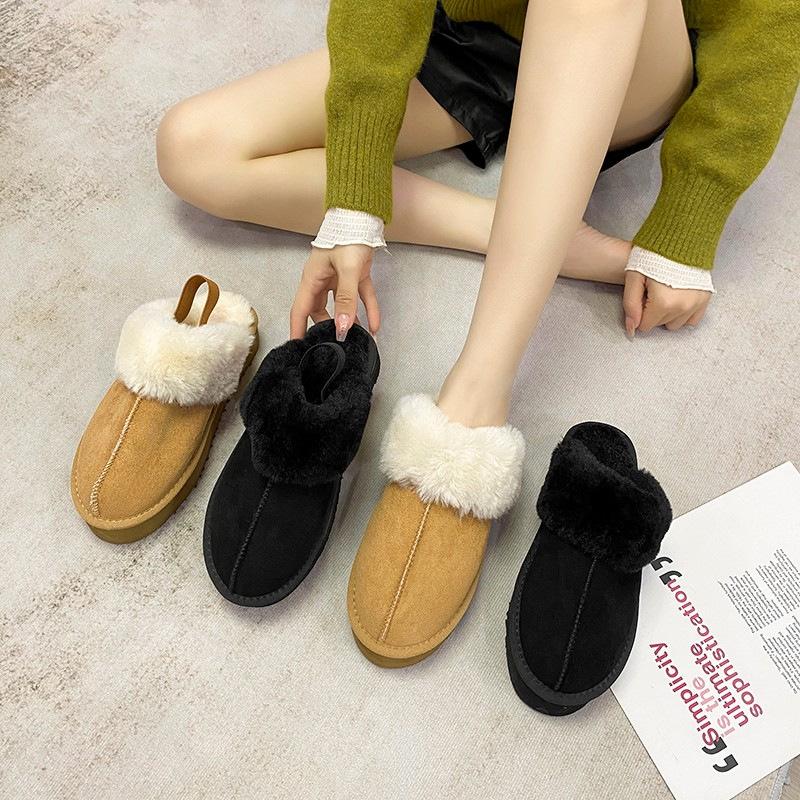 Winter new thick-soled star drag flip mouth wool bag head women's slippers integrated fur hair drag one foot cotton shoes