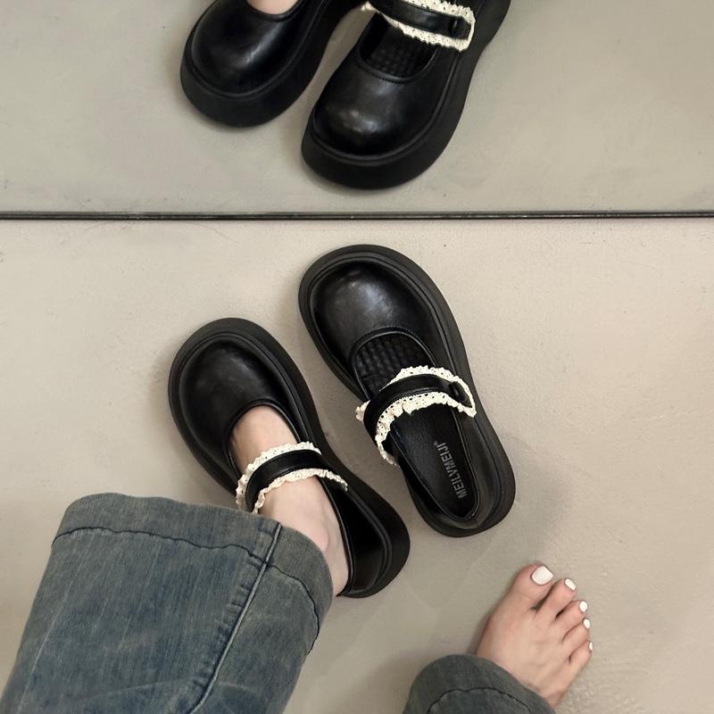 College style skirt small leather shoes 2025 spring new lace lace Velcro loafers women's Japanese JK single shoes