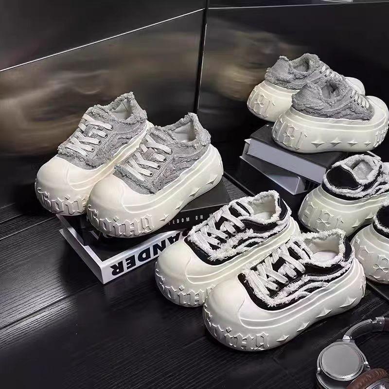Thick-soled ultra-fire shoes women's shoes 2025 dissolving new denim ins lace-up casual shoes board shoes muffin summer