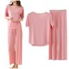 2Pcs/Set Top Pants Set Women Pajamas Seamless Ice Silk Round Neck Short Sleeve Solid Color Elastic Waist Wide Leg Loose Soft Breathable Homewear