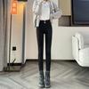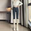 Versatile high-waisted double-buckle small-footed jeans for women, autumn and winter, small high-waisted personality, tight-fitting pencil jeans