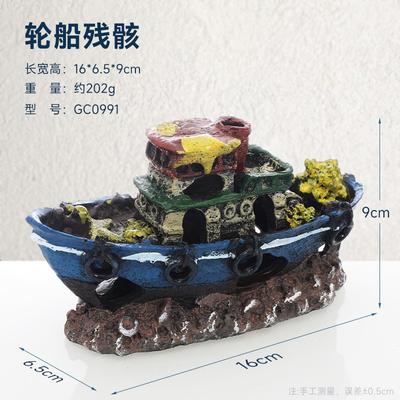 Dekorativní ornament do akvária Pryskyřičný vrak lodi s malou sítí Skalnaté útvary Pro okrasné ryby