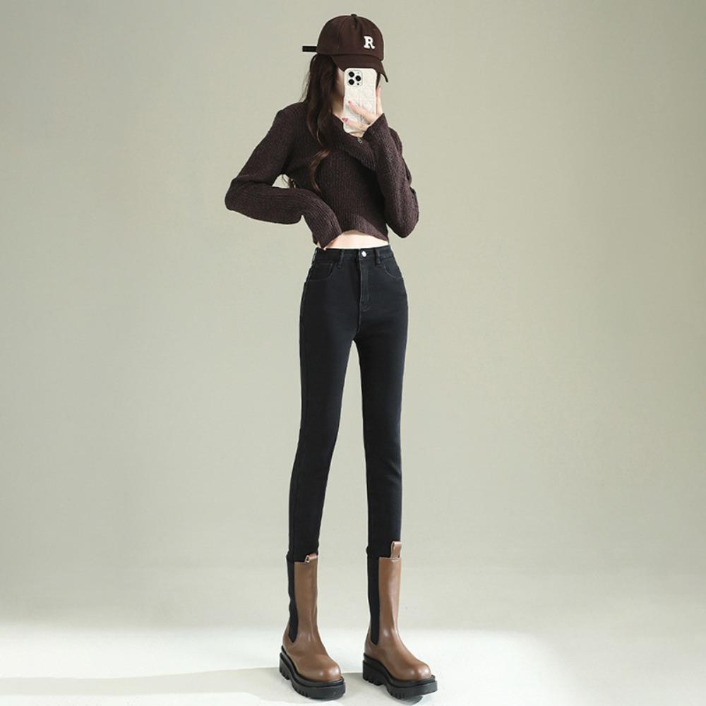 Casual versatile high-waisted elastic small-footed jeans women's autumn and winter slim-fitting and thin pencil pants
