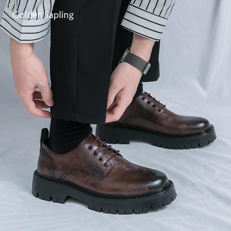 Golden Sapling Casual Business Flats Fashion Leather Men's Shoes Comfortable Footwear Platform Men Leisure Oxfords Party Shoes