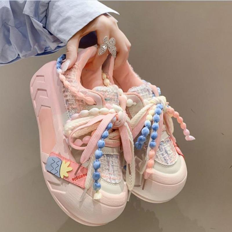 5CM Ladies Shoes on Sale Fashion Kawaii Round Toe Lace Up Women's Vulcanized Shoes Spring Flat Outdoor Breathable Women Sneakers
