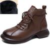Brand Retro Black Brown Split Leather boots Woman Casual Lace Up Winter Snow Boots Non-slip Rubber Booties Ladies Ankle Botas