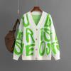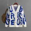 Women Letter Print Cardigan Knit Button Down Long Sleeve Open Front Sweater New Fall Winter Fashion