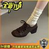 Lace-up casual Mary Jane retro Mori temperament thick heel single shoes autumn and winter new outer shoes