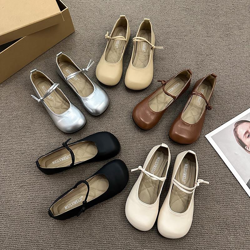 Elegant Retro Woman Shoes Casual Female Sneakers All-Match Round Toe Shallow Mouth Soft Flats Modis Grandma New Dress Square