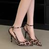 Leopard High Heeled Women Sandals Pointed Toe Shallow Buckle Sexy Shoes Fashion Pumps 2025 Summer Slingback Sandalias De Mujer