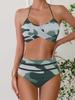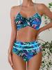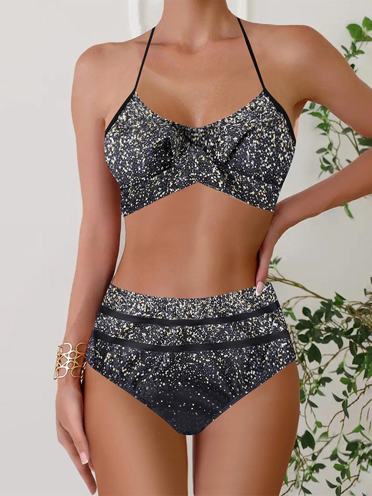 Dámský dvoudílný bikini set s vysokým pasem, potiskem, s šněrováním za krkem, plavky, letní móda, dámské plážové oblečení
