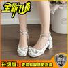 Fashion retro square head bow thick heel Mary Jane shoes women's summer lady versatile temperament new single shoes