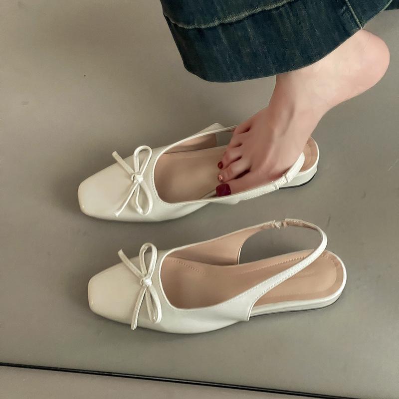 Fashion temperament bow bag head empty single shoes women's summer new slope heel small square head commuter shoes