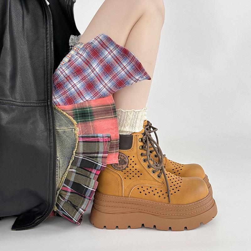 Fashion Hollow Breathable Casual Flat Bottom Martin Boots Autumn Retro Lace-Up Women's Thick Bottom Short Boots Small Boots