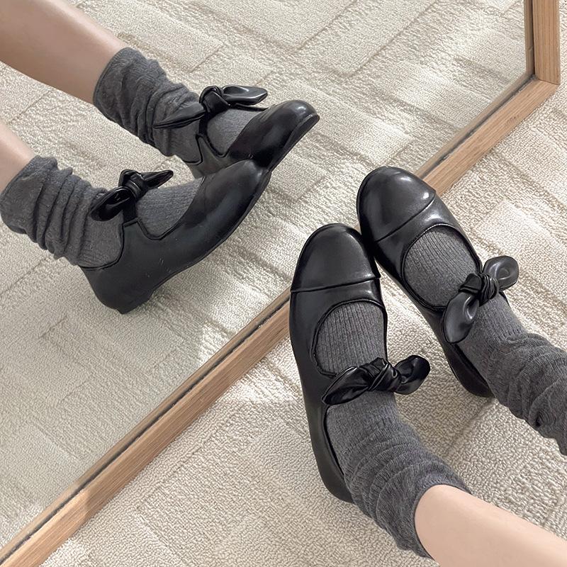 Evening wind Mary Jane shoes women's spring new retro fashion color matching light mouth bow flat shoes