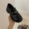 Fashion versatile brown women's new small height increase thick heel small leather shoes
