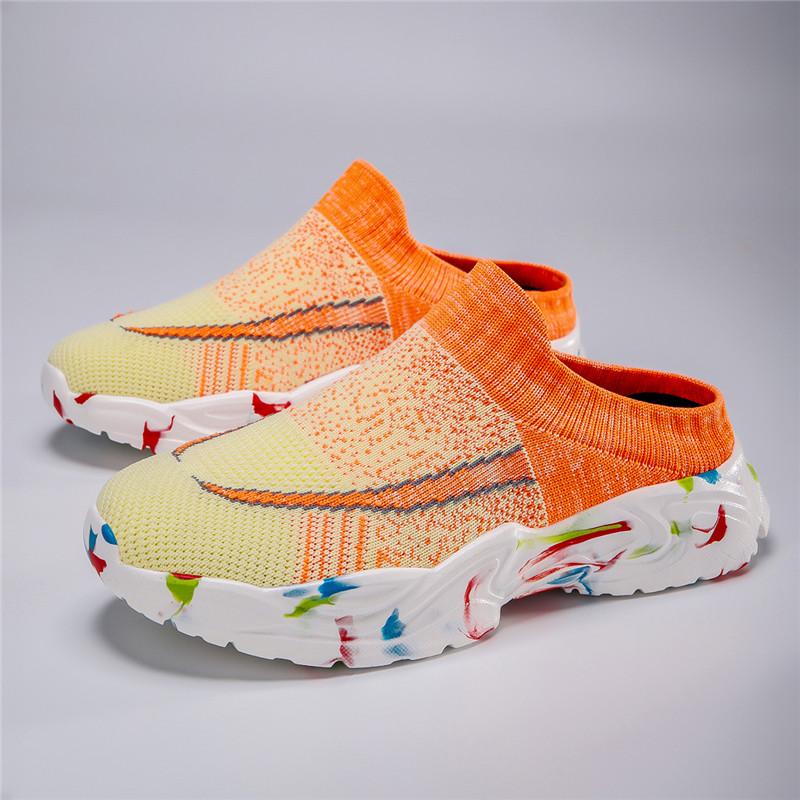 Trendy Yellow Orange Women's Summer Shoes Plus Size Comfortable Socks Loafers Women Platform Half Shoes Women Zapatos De Muje