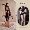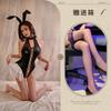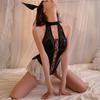 Sexy underwear patent leather splicing mesh bunny straps cross ruffle edge onesie open placket sexy tight