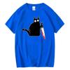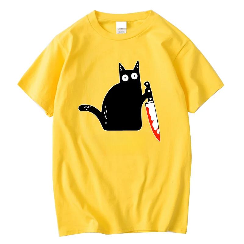 Funny Cartoon Knife Cat Printed T-Shirts Men Fashion Casual Short Sleeves Loose Breathable Pure Cotton T-shirts
