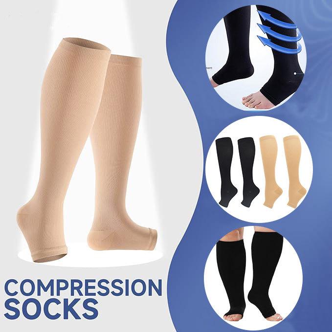Unisex Open-Toe Knee-High Compression Socks, Double Set, Non-Slip Sports Pressure Socks