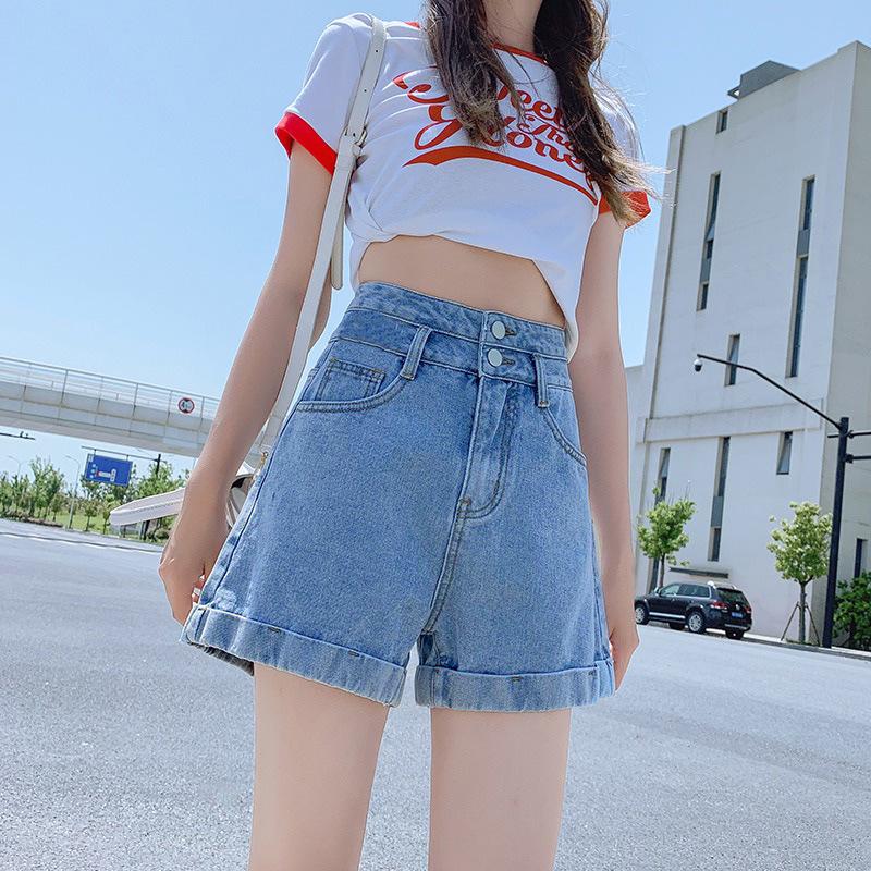 Elevate your summer wardrobe with these Women's High-Waist A-Line Denim Shorts. Crafted from high-quality cotton, these shorts offer a comfortable and breathable fit. The loose-fit design combines with a rolled hem to create a laid-back, sporty look perfect for casual outings. Their slimming silhouette effortlessly enhances your natural shape, making them a versatile addition to your summer fashion ensemble. Ideal for pairing with your favorite tops, these shorts will become a staple in your collection.
