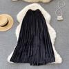 2025 Korean Style High Waist Pleated Velvet Skirt Versatile Hip Covering Thin Medium And Long A-Line Skirt