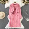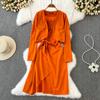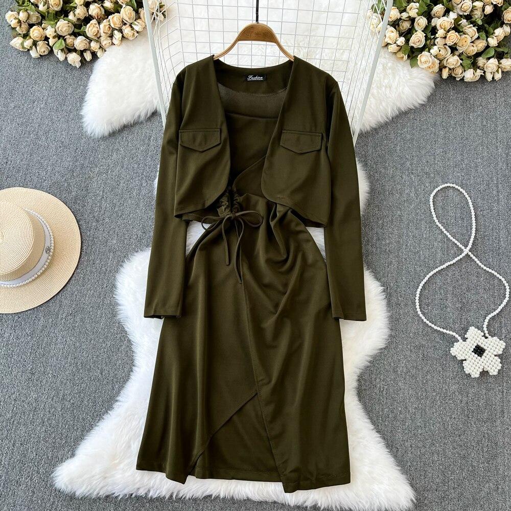 Fashion Suit Female Casual High Waist Short Solid Color Suit Jacket Two-Piece Set Halter Slit Pull Rope Dress Autumn