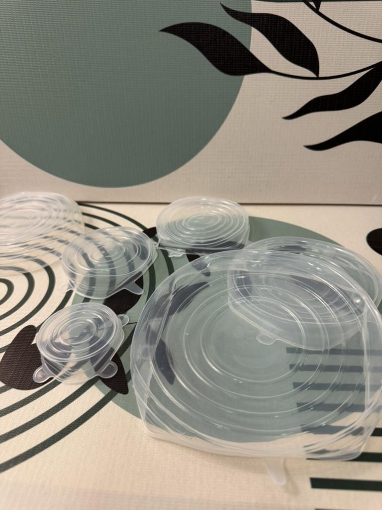Roztažitelné silikonové pokličky vyřeší všechny problémy se skladováním potravin! Silikonové roztažitelné pokličky lze nasazovat na talíře, hrnce, sklenice, nádoby a také na samotné potraviny, například na polovinu melounu nebo melounu. Pokličky na nádoby jsou hladké, odolné a dostatečně elastické, aby těsně přiléhaly k nádobám neobvyklých tvarů a zabraňovaly rozlití potravin, přičemž zachovávají čerstvost a atraktivní vzhled potravin. Polévky, vývary, kompoty, džusy a jiné tekutiny se nerozlijí za žádných podmínek, protože silikonové pokličky na nádobí těsně přiléhají k jakýmkoli materiálům. Roztažitelné silikonové pokličky můžete používat při teplotách od -60 °C do 220 °C: -v troubě -mikrovlnné troubě -lednici. Pohodlné velikosti pokliček, které se hodí na různé nádoby, průměry pokliček: 20 cm, 17 cm, 15 cm, 12 cm, 10 cm, 7 cm.