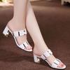 Sandals women's new summer fashion versatile high heels women's thick heel one-word drag women wear cool slippers