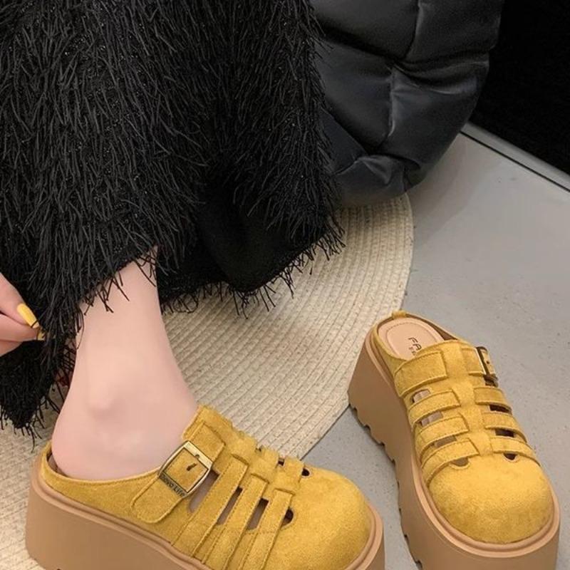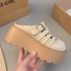 Muffin dámské svrchní oblečení na silné podrážce jaro a léto nové jednopáskové bačkory s kulatou špičkou malé cool pantofle