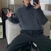 Stand Collar Men's 2024 Autumn Winter New Patchwork Zipper Fashion Solid Color Loose Minimalist Casual Long Sleeved Knitted Tops