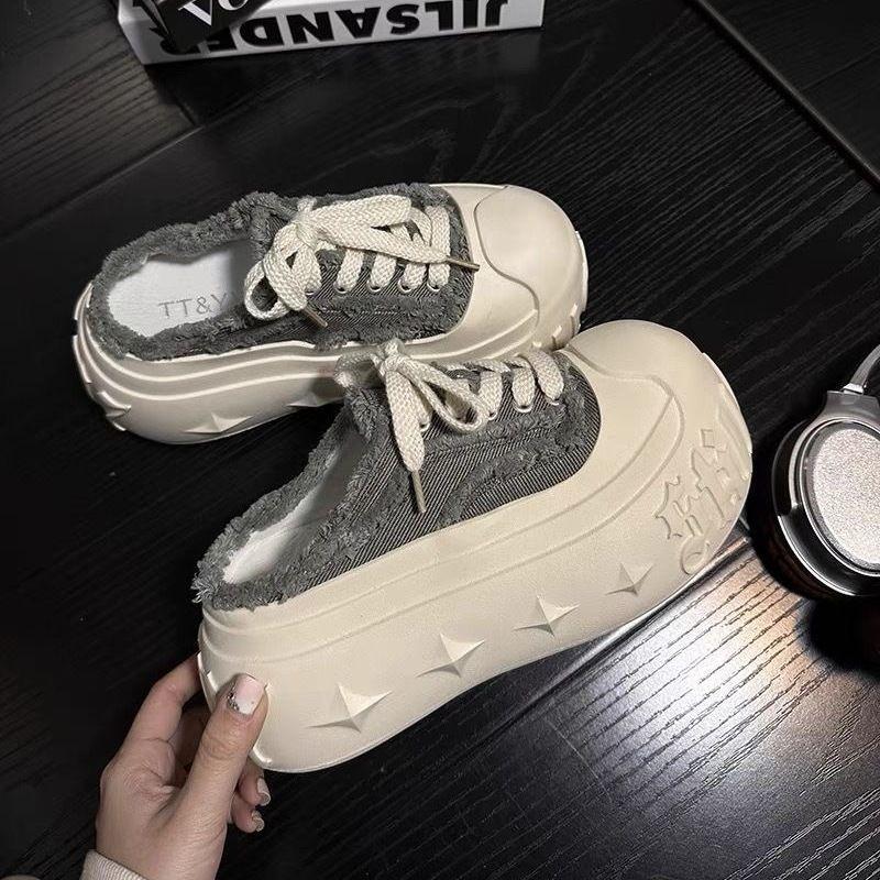 Denim big head muffin platform bread shoes women's spring new semi-drag small versatile shoes trend