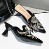 Baotou half slippers women's outer wear spring and summer embroidery pointed head thick heel cool slippers high heel sandals stiletto single shoes