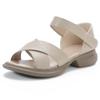 Women's Genuine Leather Chunky Heel Sandals for Wide Feet - Casual Summer Cowhide Shoes