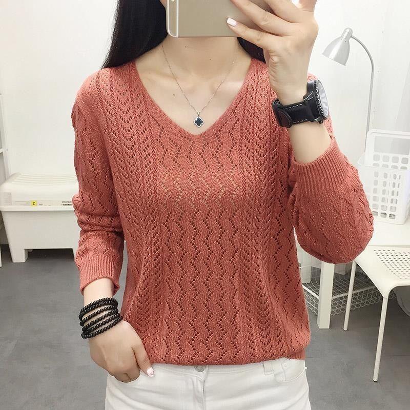 Dámský jarní a podzimní svetr s výstřihem do V, s dlouhým rukávem, volný pulovr, všestranný pletený top, základní vrstva