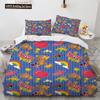 Kreslená zvířata Sada povlečení na přikrývku Žába Liška Pes Roztomilý vzor King Queen Size Ložní sada Polyesterový povlak na přikrývku s povlakem na polštář