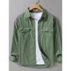 Spring/Autumn 100 Cotton Mens Long Sleeved Shirts Daily Casual Tops Turn Down Collar Double Pockets Green Shirt Korean Retro Style Men Clothing