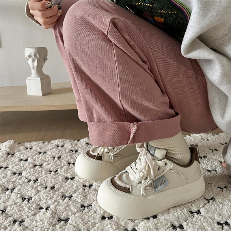 New casual versatile women's spring and autumn niche thick-soled heightening breadboard shoes big head white shoes