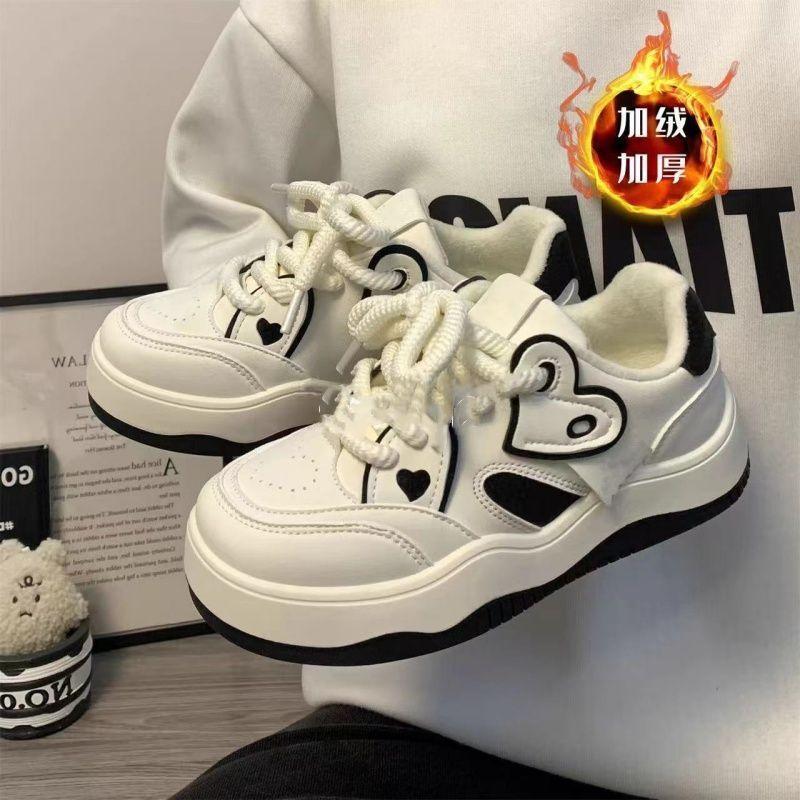 Campus wind velvet love little white shoes women's winter thickened warm two cotton shoes student versatile sports board shoes