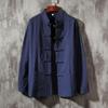 Jarní a podzimní čínská retro pánská košile v čínském stylu Lněná pánská košile s dlouhým rukávem Bavlněná a lněná košile s knoflíky ve stylu talíře Stojáček Tang oblek