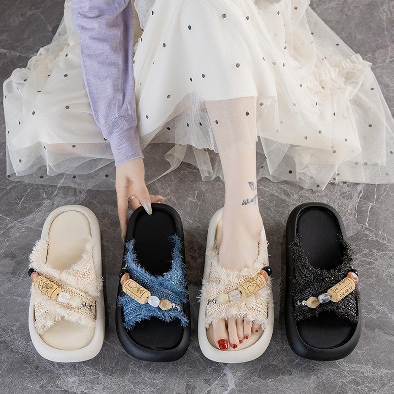 Thick-soled sandals women's shoes summer new versatile straw weaving lightweight soft-soled one-word drag tide