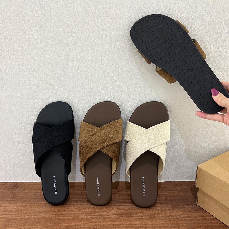 Cross-strapped linen slippers women's outerwear summer new retro casual sandals vacation seaside beach flat sandals
