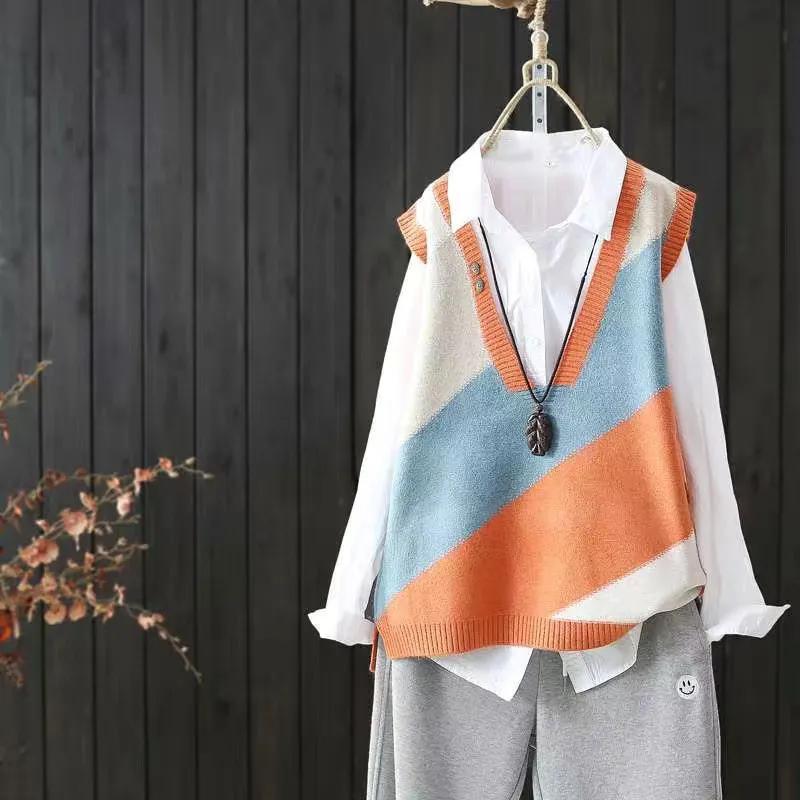 Spring and Autumn Women's Knitted Vest Tank Top Loose Sweater Women's Coat Head Knitted Shirt Art Women's Wear