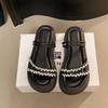 Thick-bottomed cool slippers for women to wear summer new rhinestone muffin versatile small one-word beach slippers for women