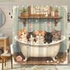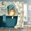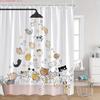 Pet Bathing Shower Curtain Adorable Dog Print White and Gray Polka Dot Design Non-slip Material for Safe Use in Bathroom